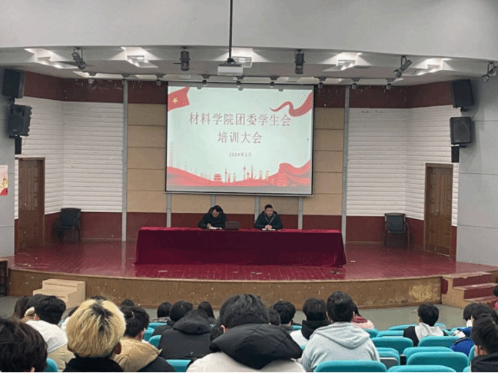 新学期伊始,为提高团委学生会工作能力,增强团队凝聚力。我院于2月29号中午在北校区五四报告厅召开新学期团委学生会培训大会,学院党委副书记朱凌、团委副书记王俊以及团委学生会各部门成员出席本次培训会议。