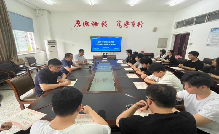 刘超充分肯定了同学们在校期间取得的优异成绩和为学院发展作出的积极贡献,深情寄语大家要始终胸怀“国之大者”,传承材料人求真务实、勇于创新的品格。希望同学们一直永葆求知之心、坚守责任之心、常怀感恩之心,用智慧和汗水书写无愧于时代的青春华章。温崇明针对就业选择、职场适应等问题,以实例解析职业成长路径,鼓励毕业生在材料领域深耕创新,在生活上多做减法,在工作学习上多做加法,乐观对待每一件事,学会控制自己的情绪,保持自信去面对未来,常回母校看看。