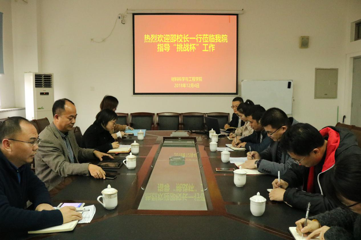12月4日下午,副校长邵荣赴我院调研,了解挑战杯项目备赛情况,学院党政领导,项目负责人参会,校团委主要负责同志陪同参加。