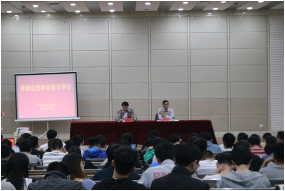 5月13日晚7:00,UED体育在化工楼报告厅举行考研动员和经验分享会,UED体育党委副书记朱凌主持会议,2015级近400名学生参加。
