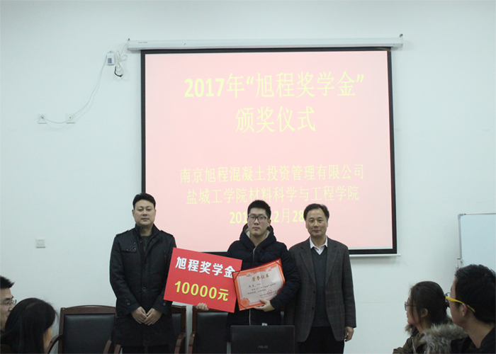 12月28日下午四点,材料科学与工程学院才知达楼B314举行2017年“旭程”奖学金颁奖仪式。南京旭程混凝土投资管理有限公司总工、江苏省建筑钢结构混凝土协会 常务副秘书长秦国新,南京旭程混凝土投资管理有限公司人事部部长张敏,学生处副处长唐浩,材料科学与工程学院院长张勤芳、党委书记陈志华,学生科老师,全体获奖同学及学生代表共计40余人参加,学院副院长诸华军主持。