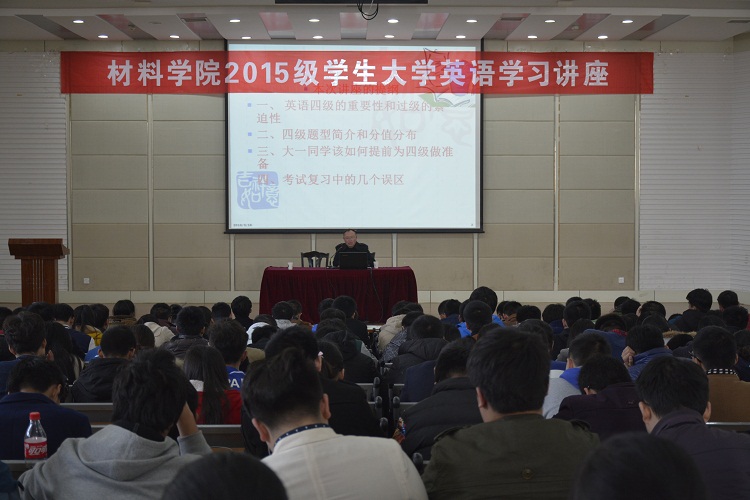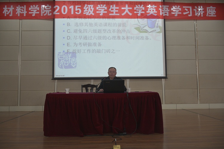 3月16日下午,UED体育在化工楼报告厅举办15级学生大学英语学习讲座。讲座由教学经验丰富的许家进老师主讲。学生科林玲科长主持讲座,UED体育15级辅导员、全体学生出席。