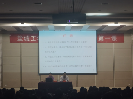 讲座中,李爱国从课程考核与成绩记载,学生降级、休学与复学、退学的条件,学位授予资格以及考试违纪处分等方面详细介绍了盐城工学院的相关制度,并提醒学生一定要遵守学校规定,按时完成学业课程,共同维护教学管理秩序,树立良好校风学风。