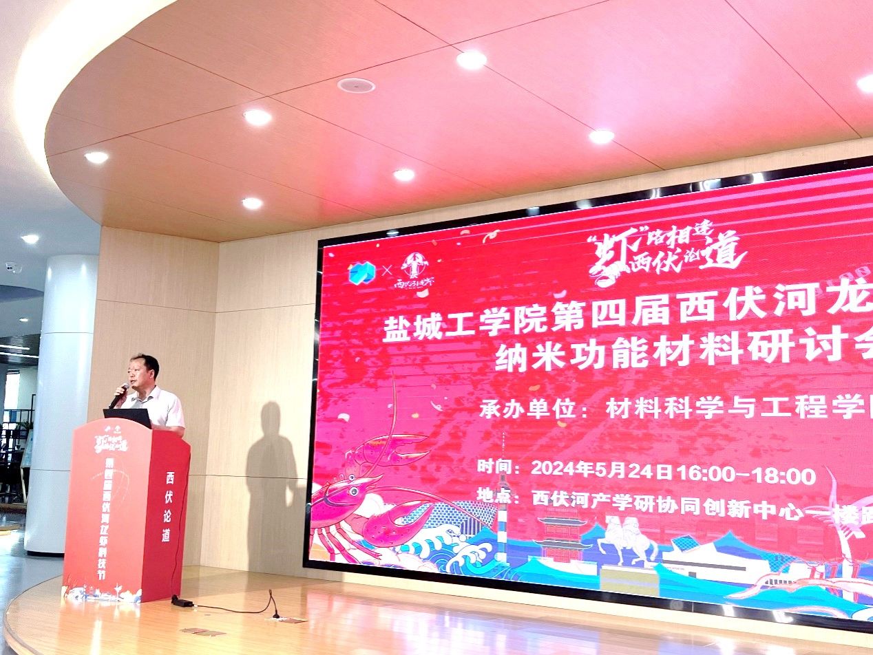 5月24日下午,材料科学与工程学院在西伏河产学研协同创新中心成功举办第四届西伏河龙虾科技节纳米功能材料研讨会。同济大学陆伟教授、南京理工大学杨毅教授、南京信息工程大学黄啸谷教授和南京理工大学谢阿明副教授应邀出席并作学术报告。盐城工学院副校长、盐城市政协副主席丁成莅临指导。UED体育党委书记唐浩、学院各研究所成员代表、专业系教师代表、研究生等50余人参加。UED体育院长罗驹华主持会议。