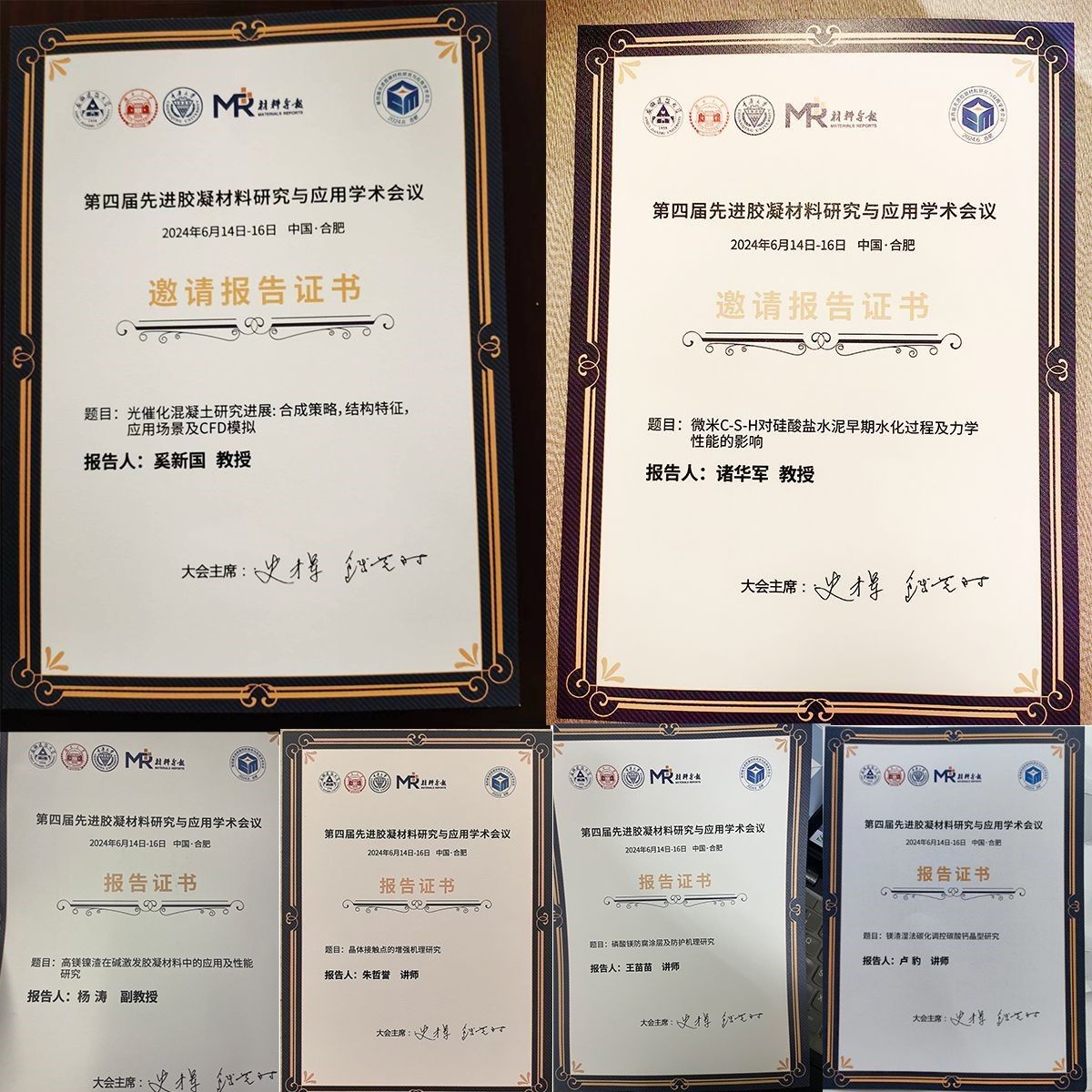 6月14日至16日,第四届先进胶凝材料研究与应用学术会议在合肥召开,来自全国高校从事建筑材料和土木工程领域研究的600余名专家学者参加。会议由中国硅酸盐学会水泥分会、中国建筑学会建筑材料分会主办,安徽建筑大学、湖南大学、重庆大学共同承办。我院师生共14人参会,其中教师9人,研究生5人。6位教师先后作大会报告。