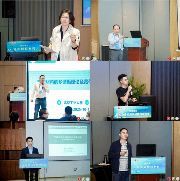 会上,李宗津、吕绪良、董晓臣、黄毅、钱觉时分别作了题为“基于硅相颗粒的负碳混凝土的开发途径”、“高可见光透明红外/紫外完全隔绝的材料研究”、“光敏剂结构调控及肿瘤多模态光治疗”、“新型电磁功能材料合成及应用”和“硫硅酸盐水泥的固废利用与粉体工程”的大会主题报告,分会围绕“含能颗粒材料”、“新能源颗粒材料”、“电磁功能颗粒与超构材料”、“颗粒及多相流系统模拟和测量”、“应用驱动型颗粒材料”五大前沿学术专题展开深度交流。报告内容横跨材料、化工、能源、环境、制造等多学科领域,议题覆盖面广、学术纵深强。与会专家通过一系列高水平学术报告,以生动详实的案例分享和前瞻性研究视角,引发了热烈的学术思辨,参会代表积极参与讨论,各抒己见,会场内学术氛围浓厚。