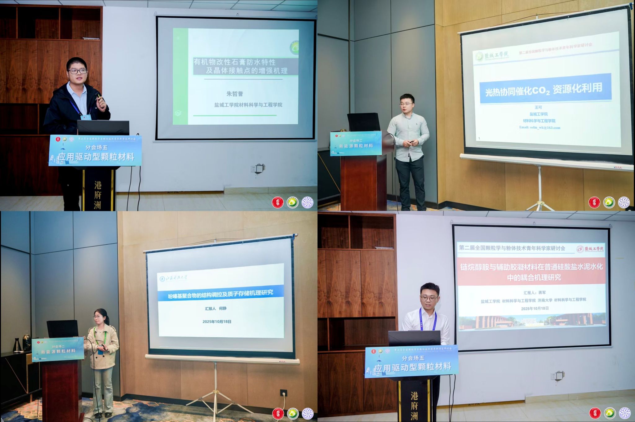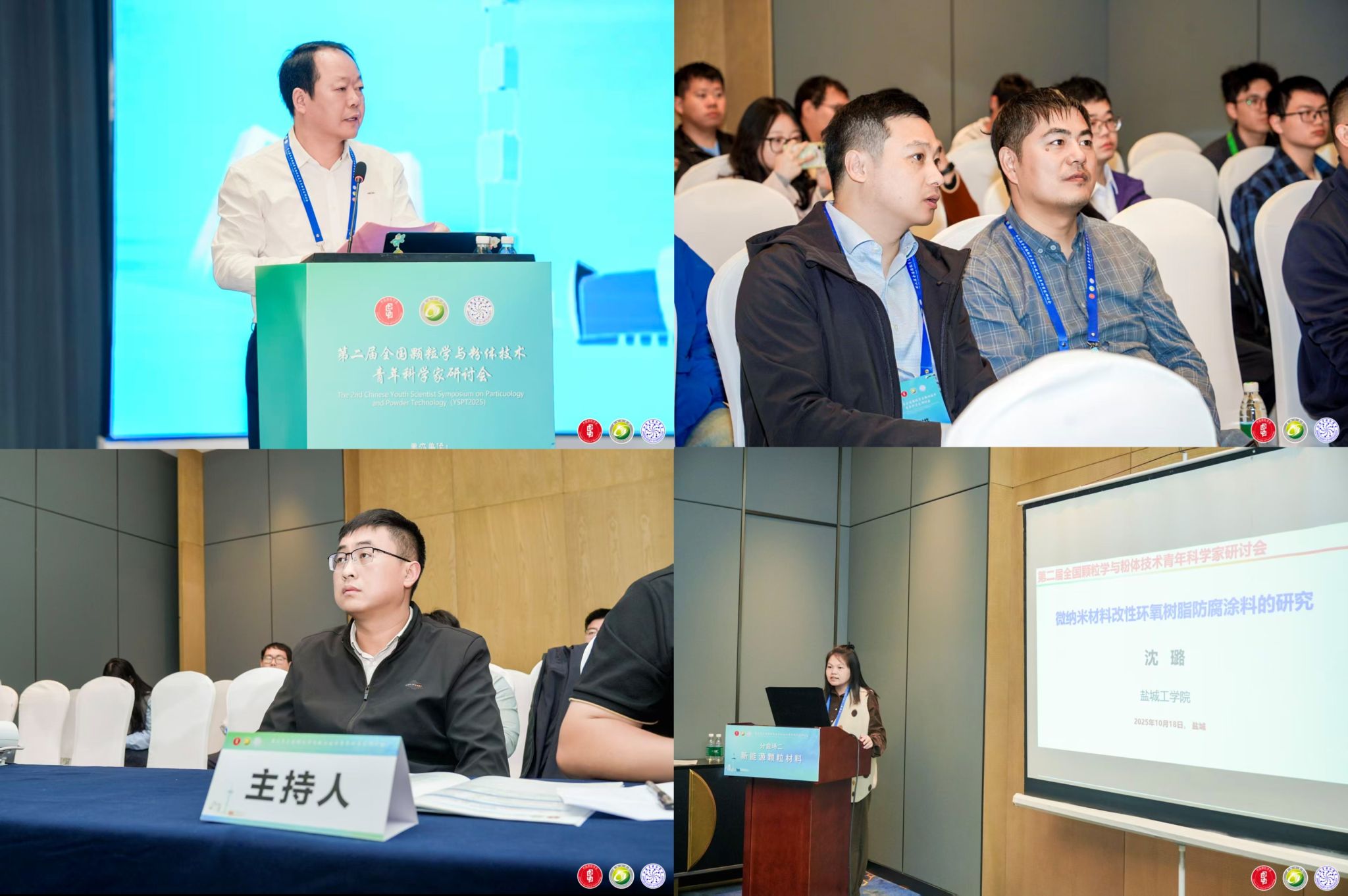 UED体育深度参与会议组织与学术交流工作,共有40余位教师参会。学院教师积极参与分会场研讨,其中沈璐、朱哲誉、刘行、王可、李敬迎、蒋军等6位教师分别作题为“微纳米材料改性环氧树脂防腐涂料的研究”、“二水石膏晶体接触点增强机理及其改性研究”、 “光催化复合材料的制备及其光催化氧化还原反应的应用”、“光热协同催化 CO2资源化利用”、“水系锌金属电池负极表界面工程研究”、“链烷醇胺与辅助胶凝材料在普通硅酸盐水泥水化中的耦合机制研究“的分会场报告,围绕颗粒材料在能源、环境、制造等领域的应用展开深入交流,相关学术观点与研究成果获得参会专家认可,充分展现了UED体育在颗粒学与粉体技术领域的科研实力。