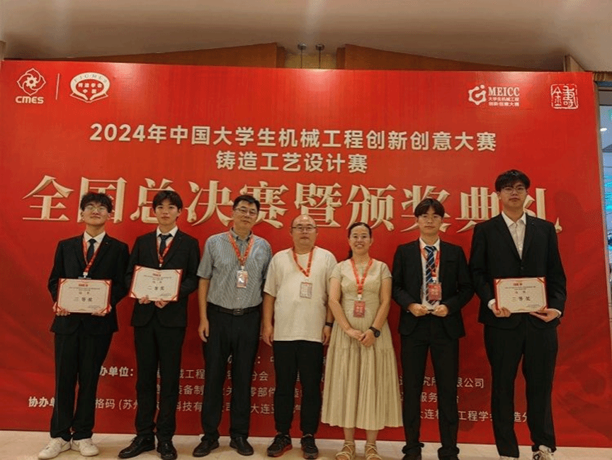 730日至82日,由中国机械工程学会主办,中国机械工程学会铸造分会承办的“2024年中国大学生机械工程创新创意大赛:第十五届铸造工艺设计赛全国总决赛终评会议暨颁奖典礼”在辽宁大连举行。我院有2个团队进入全国总决赛,郭恬恬、徐凯华、单鹏鹏、仇慧娟组成的团队(指导教师:苏桂花、程世利)和蒋文静、祝江涛、谭俊、陈语婷组成的团队(指导老师:苏桂花、董小飞)均获国家三等奖。