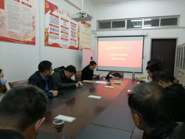 2021年12月1日下午,材料科学与工程学院教工第二党支部在UED体育第二会议室,开展了2021年秋学期第三次党史学习活动,教工第二党支部20余名教工党员参加,活动由宣传/纪检委员贺盟主持。