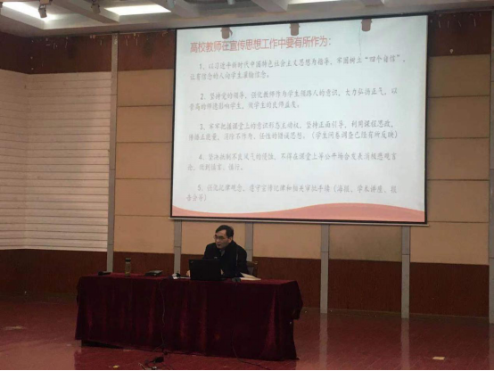 1月13日下午,在北校区五四报告厅,我院组织全体教职工学习《论党的宣传思想工作》,学院党委书记陈志华主持,院长张勤芳和全体教师参加学习。