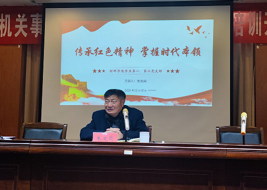 为进一步加强对本学期新发展预备党员的思想引领和价值教育。我院特邀请关工委朱友岗教授于21年12月10日上午十点在化工楼重点实验室报告厅开展“传承红色精神,掌握时代本领”专题讲座,学院团委书记王俊主持,学院全体新发展预备党员参与。