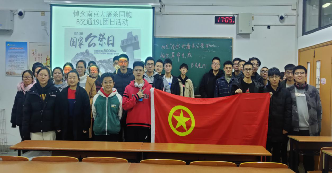 2019年12月12日下午4点,盐城工学院B交通1901团支部在博雅楼301教室举办了以“勿忘南京大屠杀公祭日,缅怀革命先烈”为主题的团日活动。