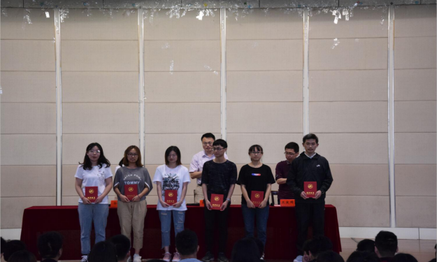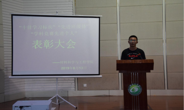 卫爱国宣读《关于表彰“十佳学习标兵“和“先进班集体”的决定》、《关于表彰学科竞赛先进个人的决定》。主席台领导一一为获奖同学和班集体颁发荣誉证书。十佳学习标兵获得者代表、交通1701班宣赵泽同学发言,他指出学生的首要任务是学习,并为大家分享了自己的学习方法,勉励大家养成良好的学习习惯,日积月累坚持下去定能取得成功。先进班集体代表、材料1702班班长刘亮发言,他指出没有规矩,不成方圆,在辅导员与班委的带领下制定了严格的班级公约,班级同学自觉遵守公约,成功打造出良好的班风学风。