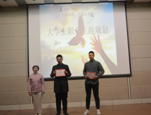 最终,八名选手中,来自高分子材料工程专业的王潇同学和材料科学与工程专业的王尊同学获得本次比赛的一等奖,其余六名同学获得二等奖,初赛的七位同学获得三等奖。在众人的掌声中,本次大学生职业生涯规划大赛决赛落下帷幕。