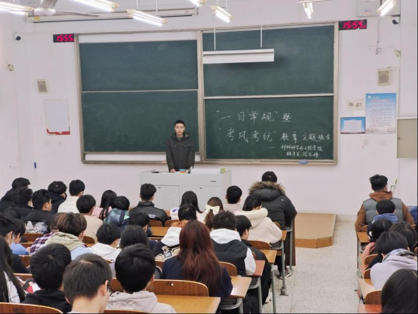 为匡正校风,严肃校纪,帮助大一新生培养良好的考风考纪意识,养成良好的日常行为习惯,12月12日下午15点,我院大一新生辅导员于知达楼3J2C202、204教室召开“一日常规”暨“考风考纪”教育主题班会,新生辅导员和全体大一新生参加。