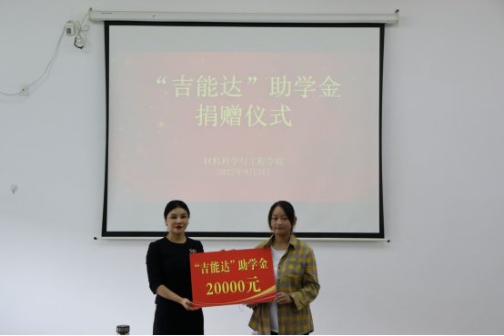 仪式上,朱凌宣读《关于颁发2022年“吉能达”助学金的决定》。江苏吉能达环境能源科技有限公司总经理曹海宁为学生颁发获奖证书。