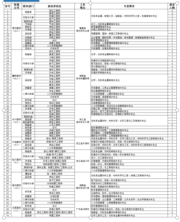 (三)培养目标:校园招聘是旗滨集团2017年启动的战略性人才培养计划。校招生定位于经过3-5年的培养逐步走向专业技术和管理的中基层岗位,5-8年内逐步走向专业技术和管理中高级岗位的战略人才储备计划。