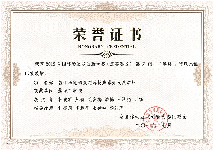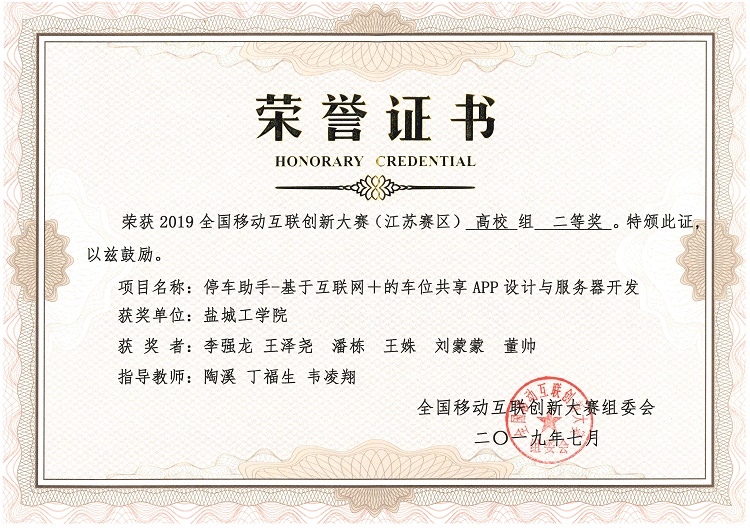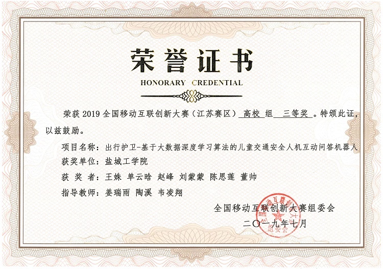 7月5日-6日,2019年全国移动互联创新大赛(高校组)“橙色云杯”江苏省决赛在常州工程职业技术学院举行。经过现场演讲、实物展示、评委提问等环节,在我校老师的悉心指导下,UED体育学生共有5项参赛作品获奖,其中《解决行人过街闯红灯的人性化警示装置》获得一等奖;《基于压电陶瓷超薄扬声器开发与应用》、《停车助手——基于互联网+的车位共享APP设计与服务器开发》、《驾驶安全卫士——面向营运车辆的驾驶员疲劳主动预警系统》分别获得二等奖、《出行护卫——基于大数据深度学习算法的儿童交通安全人机互动问答机器人》获得三等奖。同时,盐城工学院获得优秀组织奖。