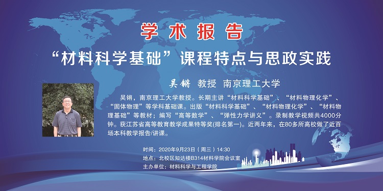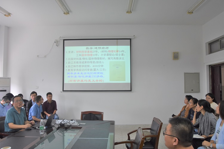9月24日下午,学院在第一会议室举办专家报告会,邀请南京理工大学吴锵教授作题为《材料科学基础课程特点与思政实践》的专题报告,学院教师近90人参加。