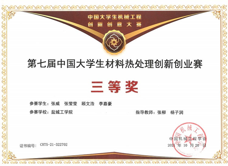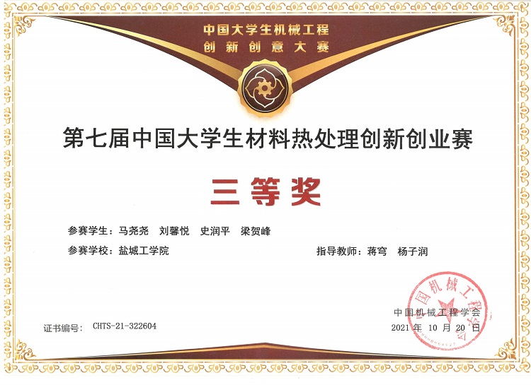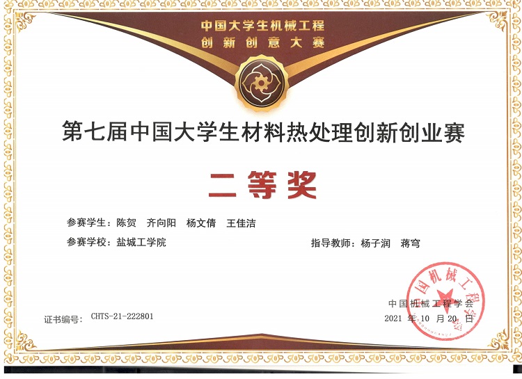 近日,第七届中国大学生材料热处理创新创业赛结果公布,我校材料科学与工程学院杨子润、蒋穹、张柳等老师指导,陈贺、齐向阳、杨文倩、王佳洁等同学完成的作品《MAX相增强Ti基复合材料快速成型及性能研究》获得二等奖;马尧尧、刘馨悦、史润平和梁贺峰等同学完成的作品《纳米颗粒增强锌铝合金涂层在人工模拟风蚀和盐水协同作用下的腐蚀行为研究》和张威、张莹莹、顾文浩、李嘉豪等同学完成的作品《B4C/Al复合材料结构设计与性能研究》分别获得三等奖。