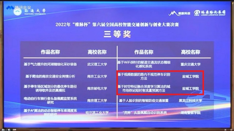 7月3日,“维脉杯”第六届全国高校智能交通创新与创业大赛决赛在南通大学落下帷幕,本次比赛采用线上方式进行。经过线上演讲、实物展示、评委提问等环节,UED体育学生2项作品获三等奖,分别是交通工程专业胡莹莹、杨锦诚、宋亚静、李丽莎、刘浩宇五位同学完成的作品《基于时空特征融合深度学习算法的城市地铁站短时客流量预测方法》(指导老师:钟栋青、韦凌翔)和胡化鹏、姬玉川、徐晶楠、陈天昊、刘义伟五位同学完成的作品《基于视频数据的路内不规范停车识别方法》(指导老师:韦凌翔、钟栋青)。