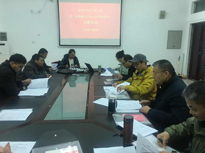 最后,与会代表表决通过了《材料科学与工程学院十四五事业发展规划》、《2019年缺编费和教科研分奖励核算及发放情况说明》及《材料科学与工程学院第二届教职工代表第四次会议决议》。党委书记陈志华对各位代表全力支持学院工作给予了充分肯定,最后对教代会代表提出了四点要求:一是希望全体教职工自觉地将个人发展与学院和学校的发展紧密结合,合力推进学院事业的科学发展、快速发展;二是要充分发挥主人翁意识,广听民意,为学院发展献计献策;三是要增强专业链对接产业链意识,为服务地方经济高质量发展作出贡献;四是要凝心聚力,共同奋斗,争取硕士点招生实现新的突破。