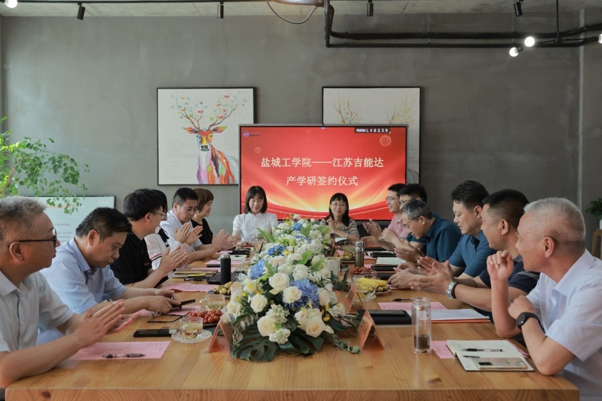 交流会上,吕海峰董事长代表吉能达公司热烈欢迎我院党政一行领导专家的到访。他介绍了吉能达发展历程,特别是在选粉机、烘干机、球磨机、烟气多污染物处理等节能环保装备技术创新方面的重大需求和突破。吕海峰表示,吉能达公司在许多业务领域与盐城工学院的学科专业方向高度契合,期待今后能进一步加强与盐城工学院UED体育的交流与合作,实现优势互补、相互促进、合作共赢。