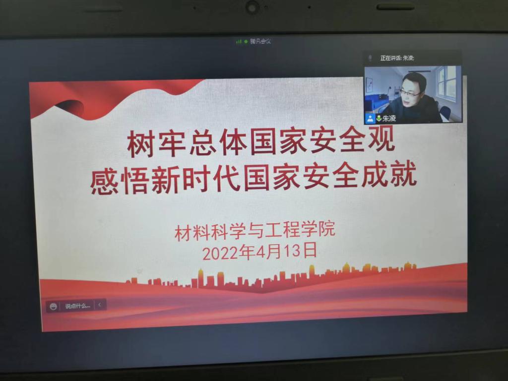 今年4月15日是我国第七个全民国家安全教育日。为全面落实总体国家安全观,进一步增强我院国家安全意识,推动国家安全宣传教育深入开展。材料科学与工程学院于4月13日开展全民国家安全教育日主题学习活动。会议由学院党委书记唐浩主持,全体教职工采取线上模式参会。