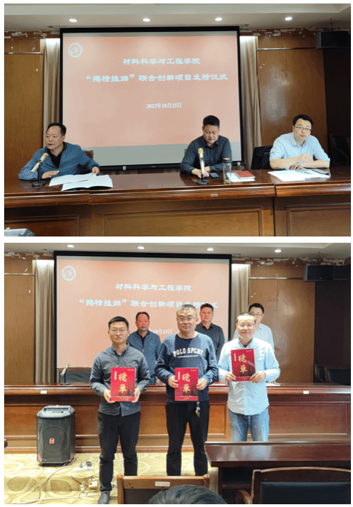 期间,院领导为获批“揭榜挂帅”联合创新项目的“高性能金属材料”、“新能源材料与器件”和“环境催化与能源催化”3个研究所颁发榜单。