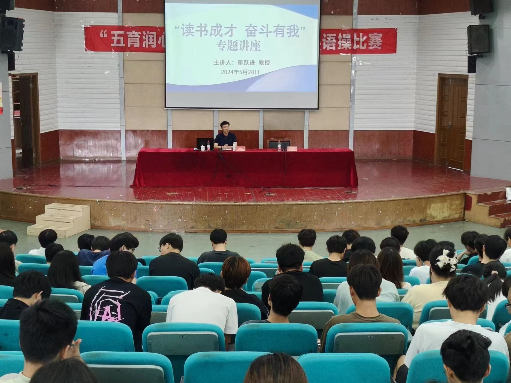 为贯彻落实立德树人根本任务,引导学生坚定理想信念,激励学生树立远大抱负,进一步落实推动关工委优质化建设工作,5月28日下午,UED体育邀请“银龄理论宣讲团”专家董跃进教授,在五四报告厅开展“读书成长 奋斗有我”专题讲座。讲座由学院党委书记唐浩主持,2023级辅导员及全体学生参加。