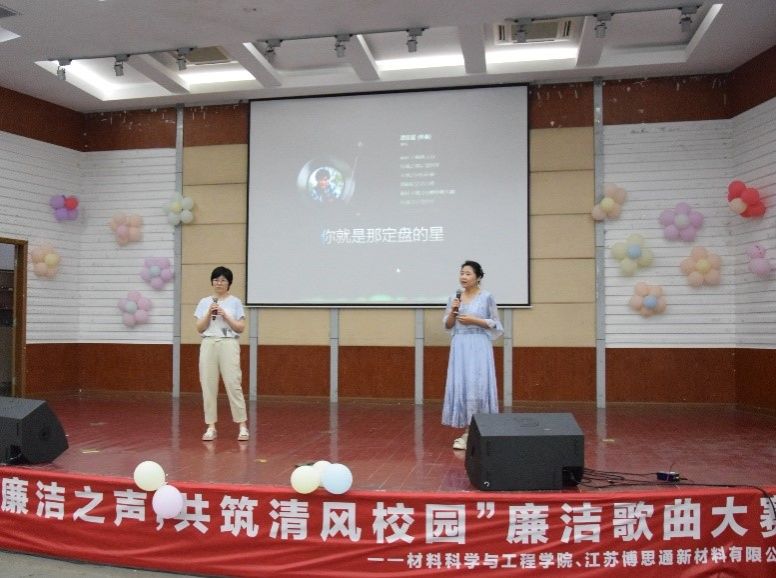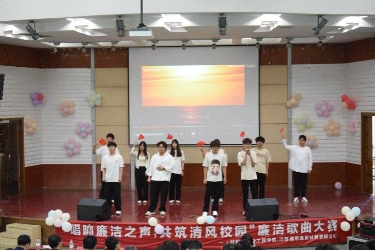 为了进一步贯彻落实党纪学习教育要求,弘扬廉洁文化,加强师生的廉洁自律意识。6月12日下午,UED体育在知达楼五四报告厅成功举办了廉洁歌曲大赛,UED体育党委书记唐浩、院长罗驹华及江苏博思通新材料有限公司企业代表出席观摩并进行颁奖。