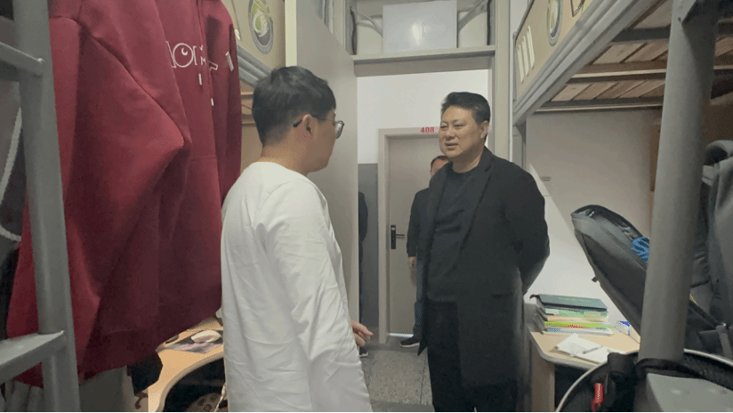 走访过程中,领导老师与同学们进行了亲切的交谈。唐浩指出学校正在接受教育部本科教育教学评估,要求同学们要以积极向上的精神风貌和高度的责任感参与本次评估工作,为学校高质量发展作出自己应有的贡献。同时,询问了解同学们的学习生活情况和精神状态,并对同学们的需求和困惑逐一答复,鼓励同学们要保持良好的生活习惯和积极的心态。罗驹华强调同学们要注意防火、防盗、防骗,确保人身及财产安全,注意饮食卫生安全,希望同学们能够遵守宿舍管理规定,保持宿舍通风和整洁,共同营造和谐、温馨的宿舍环境。随后,院领导和辅导员老师们重点关注了各年级学生当前的学习情况,围绕学风建设提出了一些学习规划建议,希望同学们能够克服慵懒麻痹思想,以青春之姿、奋斗之态投入到日常的学习生活中去。