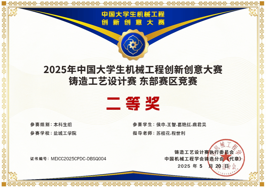 近日,由中国机械工程学会主办,中国机械工程学会铸造分会承办的“2025年中国大学生机械工程创新创意大赛:铸造工艺设计赛”东部赛区区域赛圆满落幕。UED体育学生获得本科生组一等奖1项,二等奖2项,研究生组三等奖1项。