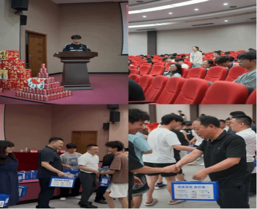 会上,B高分子222班胡成同学代表考研学子对学院领导、老师的关心和校友的厚爱表达了感谢。陈波与学院领导还为考研学子们送上了精心准备的“研途祝福包”。