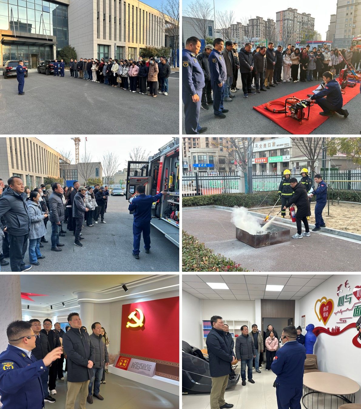 在刘威的引导与专业讲解下,学院教师首先参观了各类消防车辆与特种救援器材,了解其功能与应用场景。随后,大家移步至训练场,认真聆听灭火器使用要领讲解,并踊跃进行实操演练,掌握了扑救初起火灾的基本技能。在大队内部参观环节,学院一行先后走访党建活动室、心理咨询室、荣誉室及消防员宿舍。整洁规范的内务管理、底蕴深厚的党建文化、关注指战员心理健康的暖心举措,以及荣誉室内满载战绩的奖牌锦旗,都给参观者留下了深刻印象,让大家对消防救援队伍严谨的作风、崇高的使命与取得的辉煌成就有了更直观、更全面的认识。