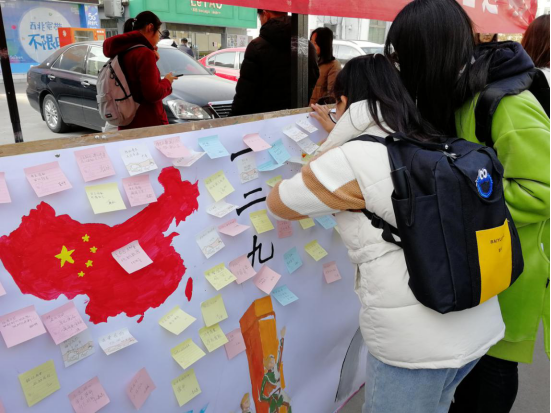 为纪念“一二九”运动84周年,培育学生爱国主义情怀,丰富学生校园文化生活,12月9日,我院举行“一二九”运动84周年纪念活动。同学们在北校区水房、食堂、宿舍等地点摆摊设点,通过发放宣传单、手绘海报、签名墙留言等形式引导广大青年学生继承革命传统,弘扬民族精神,牢记历史责任,激发广大青年学生努力拼搏,奋发向上,报效祖国的热情。