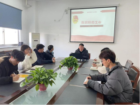 2021年11月30日中午12:30,学院团委副书记王俊老师主持的以“意识形工作态”为主题的会议,在知达楼第一会议室开展,参与本次会议的人员有UED体育团委全体学生。