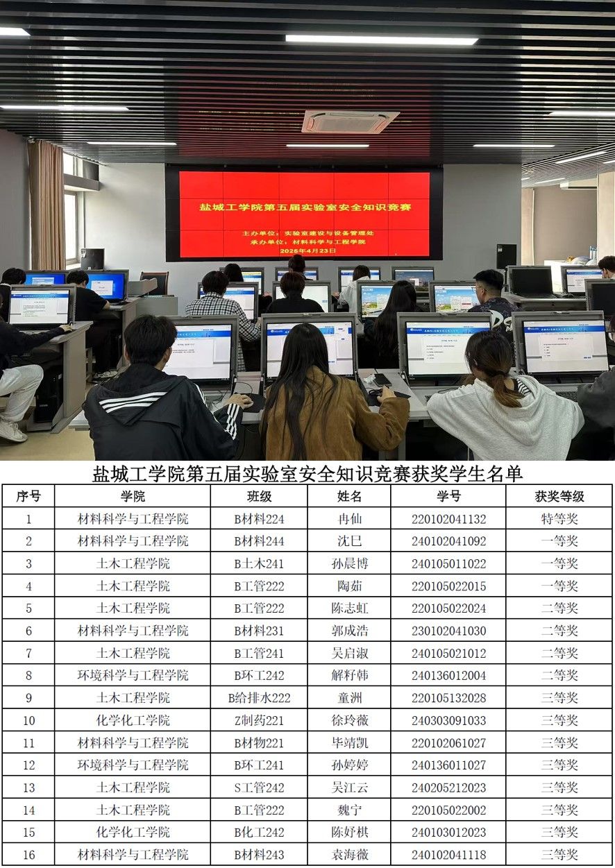 为加强校园实验室安全管理,普及实验室安全知识,增强师生安全防范意识。4月23日下午,由实验室建设与设备管理处主办、材料科学与工程学院承办的“盐城工学院第五届实验室安全知识竞赛”在建军东路校区知达楼虚拟仿真实验室举行。